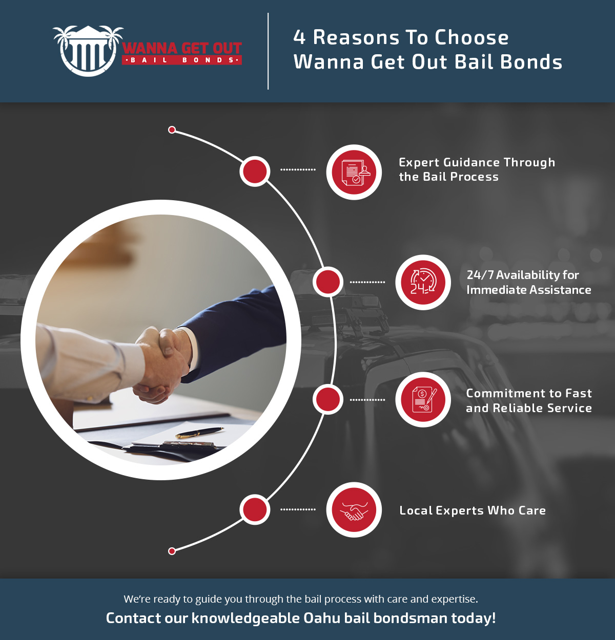 When facing an unexpected arrest, time is of the essence. At Wanna Get Out Bail Bonds on Oahu, we understand how critical it is for you or your loved one to avoid spending unnecessary time behind bars. With our 24-hour assistance, we provide fast and reliable service for bail bonds across Honolulu and the entire island. Here are four compelling reasons to choose our local bail bonds service.