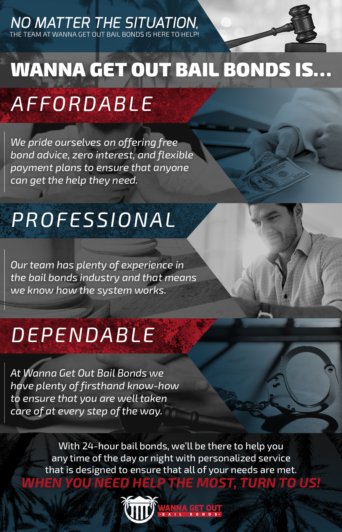 Offering experienced, affordable bail help 24/7.